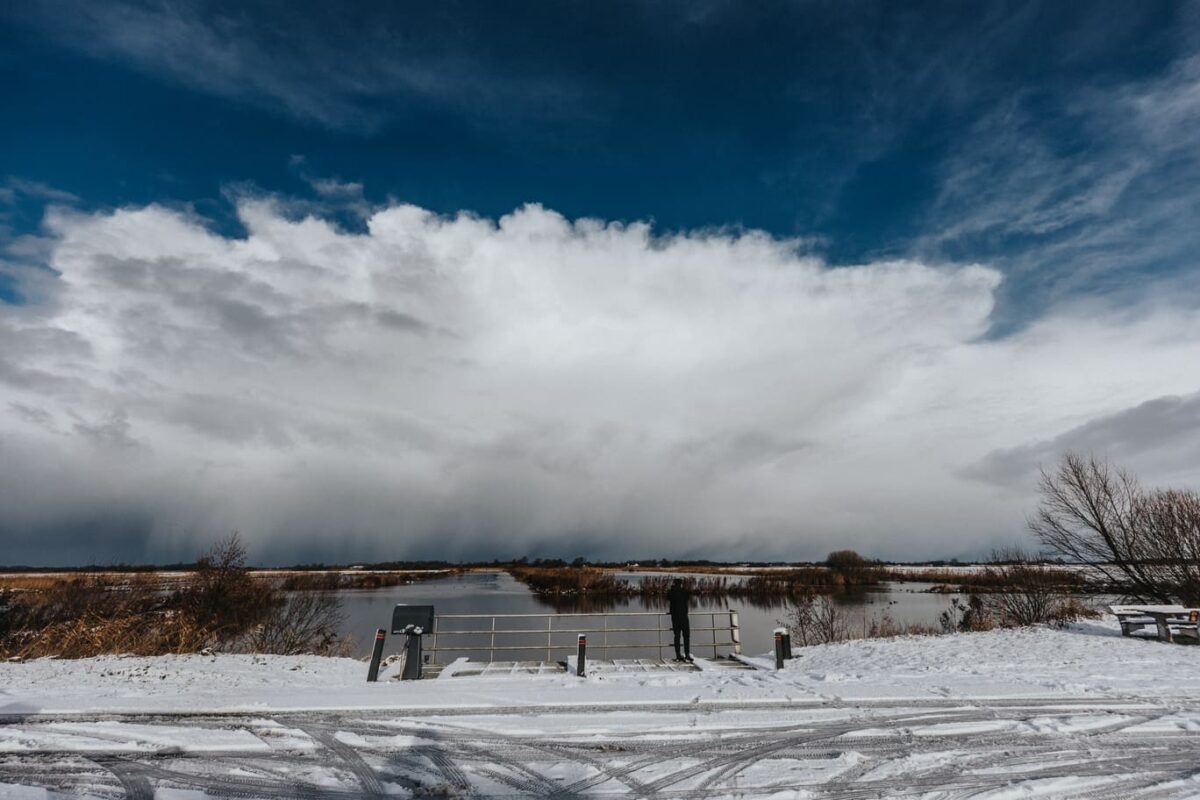 Uiteindelijk kwamen we terecht bij Smalle Ee waar we uitzicht hadden op een bui in de verte die langzaam onze kant op kwam.
